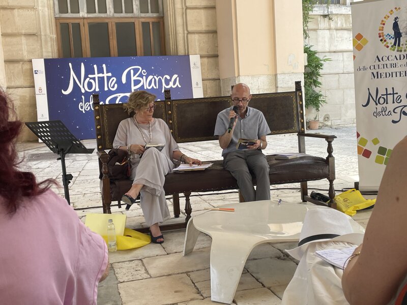 Confermata anche per questa edizione la pratica dei Seminari poetici del Mediterraneo, incontri tenuti dagli ospiti della Notte bianca, con partecipazione gratuita, previa iscrizione entro sabato 29 giugno a info@culturedelmediterraneo.it. Il seminario inaugurale di quest’anno sarà curato dalla poetessa palermitana (di Prizzi) Margherita Rimi, che il 30 giugno alle ore 11 terrà presso l’Istituto Vittorio Emanuele II di Giovinazzo l’incontro “Dalle voci al popolo dei bambini”. Poetessa e saggista, medico e Neuropsichiatra dell’infanzia e dell’adolescenza, Margherita Rimi svolge un’intensa attività di prima linea per la cura e la tutela dell’infanzia, contro le violenze e gli abusi sui minori e a favore dei bambini portatori di handicap. Tra le sue raccolte di versi segnaliamo “Era farsi. Autoantologia 1974-2011”, Marsilio, 2012, e “Le voci dei bambini”, Mursia, 2019. Il secondo seminario, il 1° luglio alle 11, a Molfetta, presso il Museo Civico Archeologico del Pulo, avrà titolo “Poesia e impegno civile” e sarà curato da Giuseppe Langella, nato a Loreto, già professore ordinario di Letteratura italiana moderna e contemporanea all’Università Cattolica, uno dei massimi teorici e storici della Modernità letteraria, cui ha anche dedicato una corposa monografia nel 2021, per Pearson. L’ultimo suo libro di poesia, “Pandemie e altre poesie civili” è stato pubblicato da Mursia nel 2022.