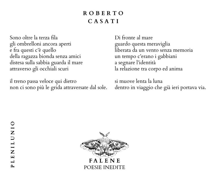 Falene Roberto Casati – PoetaPubblicato da Plenilunio in Riviste e blog · Sabato 31 Gen 2026Tags: Facebook